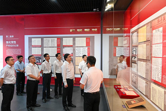 展覽透過一個個生動的案例,圍繞“擎旗抗戰(zhàn) 嚴明政治紀律”“強化黨性 嚴明組織紀律”“激濁揚清 嚴明廉潔紀律”“心系人民 嚴明群眾紀律”“建章立制 嚴明工作紀律”“立德立言 嚴明生活紀律”“所向披靡 奪取抗戰(zhàn)勝利”等七個篇章,生動展現(xiàn)了新四軍堅定崇高的信仰、守紀如鐵的作風、嚴于律己的風范、懲治腐敗的決心、親民愛民的情懷和艱苦奮斗的精神。集團領(lǐng)導班子認真聽取講解介紹,用心學習體悟,表示將嚴格對照“六項紀律”,在學紀知紀明紀守紀上下功夫,在以學促干上持續(xù)用勁,把深化黨紀學習教育同貫徹落實省市委全會部署要求、抓好當前各項工作結(jié)合起來,以實干實績實效為鹽城高質(zhì)量發(fā)展大局多作貢獻。