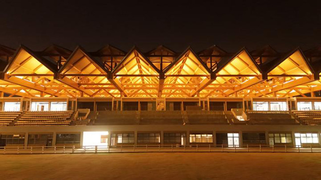 光明國際馬術(shù)中心的主場館以“木構(gòu)新境、眾檐共景”為核心設(shè)計概念,整體采用膠合木結(jié)構(gòu)。蘇州昆侖綠建在參與設(shè)計過程中,巧妙地將傳統(tǒng)木構(gòu)的榫卯工藝與現(xiàn)代膠合木技術(shù)結(jié)合,既延續(xù)了千年木構(gòu)技藝的匠心精髓,又賦予了建筑輕盈通透的現(xiàn)代美感,為場館的穩(wěn)固性與藝術(shù)性提供專業(yè)保障。