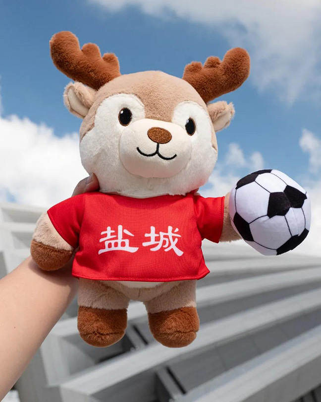 伴隨著蘇超聯(lián)賽影響力的持續(xù)擴大,團隊精心打造的蘇超周邊文創(chuàng)產(chǎn)品——“鹽小茸”系列玩偶一經(jīng)推出便成為市場新寵。“鹽小茸”巧妙融合鹽城文化元素,憑借可愛顏值與文化共鳴,頻繁亮相各直播間,并在微店、抖音、小紅書等國內(nèi)平臺以及亞馬遜、TikTok等國際渠道持續(xù)熱銷。