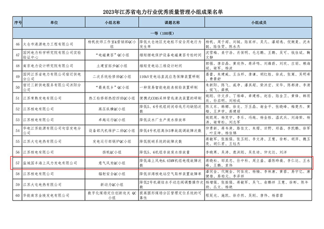 日前,在江蘇省電力行業(yè)協(xié)會(huì)主辦的2023年度QC成果發(fā)布會(huì)上,鹽城國(guó)豐公司QC小組“降低海上風(fēng)電6.45MW機(jī)組電纜故障次數(shù)”這一課題,經(jīng)過(guò)資料評(píng)審、現(xiàn)場(chǎng)發(fā)布等多個(gè)環(huán)節(jié),榮獲成果一等獎(jiǎng)。