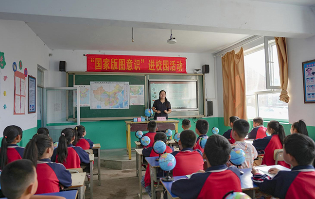 當(dāng)日上午,河北省自然資源廳、河北省測繪學(xué)會、河北中色測繪公司相關(guān)同志共同走進承德市隆化縣柵子村小學(xué),開展“國家版圖意識”進校園活動,為同學(xué)們送去了一堂有趣的國家版圖知識專題課?;顒蝇F(xiàn)場,石家莊鐵路職業(yè)技術(shù)學(xué)院李笑娜老師從地圖歷史、地圖規(guī)范、地理信息安全等方面,深入淺出地向同學(xué)們講解了國家版圖相關(guān)知識,以及地球儀的正確使用方法,介紹了新版標(biāo)準(zhǔn)地圖的詳細情況。中色測繪公司向該小學(xué)和村委會贈送了國家版圖知識宣傳冊、地圖冊、地球儀以及文體學(xué)習(xí)用品,鼓勵同學(xué)們積極學(xué)習(xí)版圖知識,進一步樹立國家版圖意識,自覺維護國家版圖尊嚴(yán)。