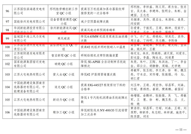 近日,鹽城國豐公司質量管理小組的“降低6.45Mw機組變槳液壓油泄漏次數”與“液壓變染系統(tǒng)Hydroll蓄能器系統(tǒng)升級”兩個課題,分別榮獲2025年度江蘇省電力行業(yè)QC小組發(fā)布一等成果與二等成果。