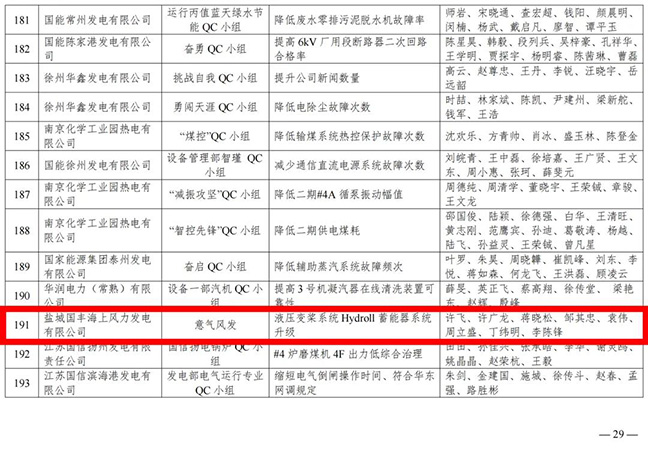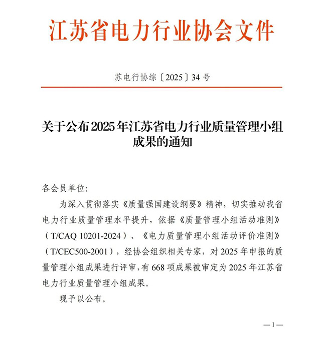 近年來,國豐公司在質量管理領域收獲頗豐,榮獲江蘇電力行業(yè)質量管理優(yōu)秀成果: