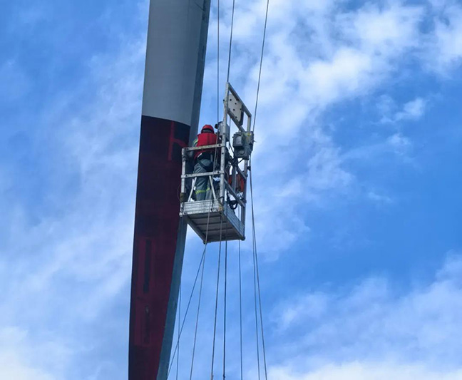 技術(shù)工作面臨多重挑戰(zhàn):海風(fēng)的鹽霧侵蝕、葉片復(fù)雜的曲面結(jié)構(gòu)、高空吊籃狹小的作業(yè)空間,都使得常規(guī)維修變得異常復(fù)雜。每一處損傷定位、每一道修補(bǔ)工序,都需要極高的專業(yè)素養(yǎng)、極強(qiáng)的心理素質(zhì)和過(guò)人的體力支撐。