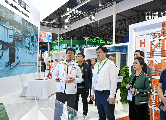 張林海一行先后參觀了國家館、技術(shù)裝備區(qū)和服務(wù)貿(mào)易區(qū),詳細(xì)了解前沿技術(shù)、應(yīng)用場景和創(chuàng)新服務(wù),并就裝備制造新產(chǎn)品、減排降碳新技術(shù)、安全生產(chǎn)新裝備和全產(chǎn)業(yè)鏈新能源與參展企業(yè)進(jìn)行深入溝通交流。