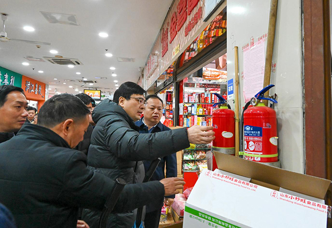 在先鋒國際廣場大潤發(fā)超市內(nèi),前來采購的市民絡(luò)繹不絕。張林海重點(diǎn)檢查了超市消防安全制度落實(shí)、微型消防站建設(shè)、電氣線路敷設(shè)、安全疏散條件、安全員配備、消防設(shè)施設(shè)置及運(yùn)行等情況。他指出,佳節(jié)來臨,超市人流量大、堆積貨物多,要加強(qiáng)人流監(jiān)測和疏導(dǎo)工作,抓好場所消防安全管理,把各項(xiàng)措施落實(shí)到位、各項(xiàng)責(zé)任夯實(shí)到位、各個細(xì)節(jié)考慮到位,為市民提供安全、放心的購物環(huán)境。要堅(jiān)持“人防、技防、物防”同向發(fā)力,緊盯超市、臨街店鋪等多業(yè)態(tài)混合場所,加強(qiáng)日常監(jiān)管和從業(yè)人員消防安全培訓(xùn)力度,常態(tài)化開展應(yīng)急演練,確保在關(guān)鍵時候拉得出、打得響。