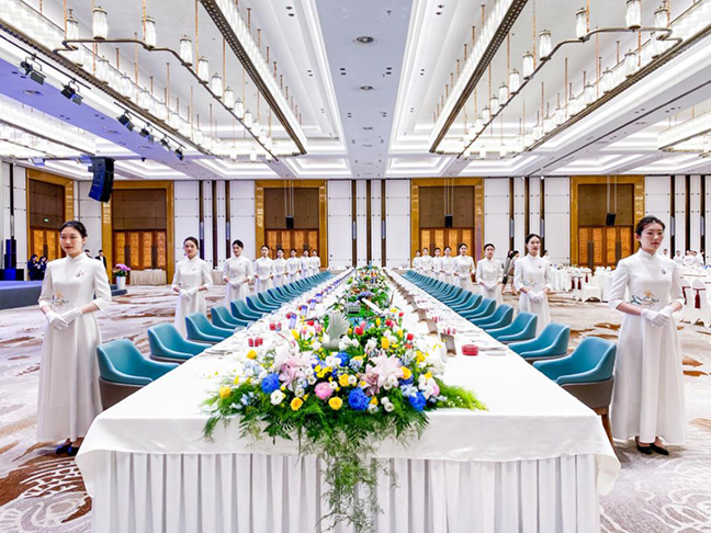 面對此次國際生態(tài)盛會,鹽城迎賓館酒店集團高度重視,第一時間成立專項領(lǐng)導(dǎo)小組,統(tǒng)籌旗下鹽城迎賓館、萬豪酒店、國展宴會中心等優(yōu)質(zhì)資源,建立協(xié)同作戰(zhàn)機制。通過多次召開協(xié)調(diào)會梳理流程、排查隱患,并對任務(wù)實行“清單化管理、責(zé)任化到人”,以“零疏漏”的精準(zhǔn)籌備,為論壇接待工作奠定了堅實基礎(chǔ)。