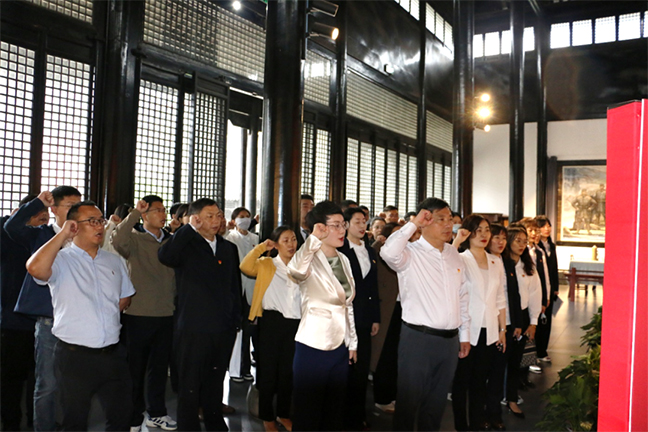 本次活動以“踐行‘三個務(wù)必’ 庚續(xù)紅色血脈”為主題?;顒又校?個基層黨組織的黨員干部職工首先來到新四軍重建軍部舊址(泰山廟),從老照片、文獻、歷史實物中深入了解當年新四軍在艱苦環(huán)境中浴血奮戰(zhàn)、英勇抗敵的光輝歷程,感受革命先烈們忠貞不渝的愛國主義情懷。在紀念館大廳,全體黨員面向黨旗重溫入黨誓詞,表達不忘初心、牢記使命的堅定信念。